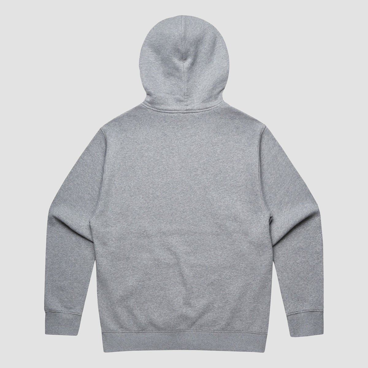 Pullover hood, drawstrings, self-fabric hood lining, 2x2 cuff and hem ribbing
