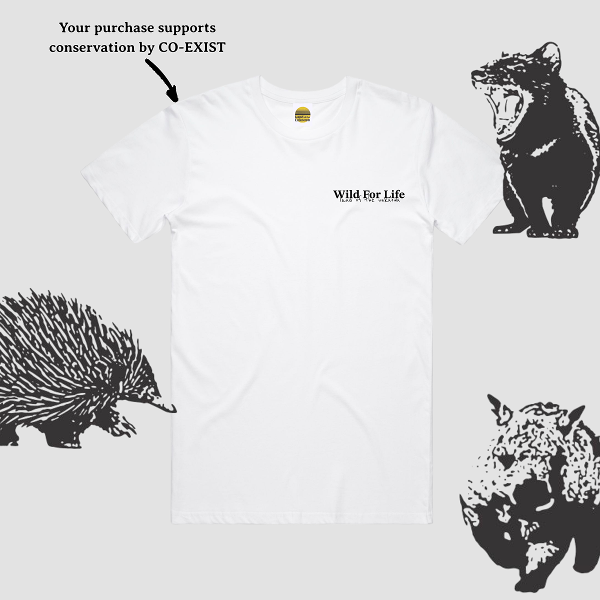 The 'Wild For Life' collection is about raising awareness for our iconic native animals. We believe that we shouldn't just settle for these threatened and endangered Aussie icons to be kept alive in captivity, but aim to keep them 'wild for life'. After all, we're here together, let's Co-Exist.